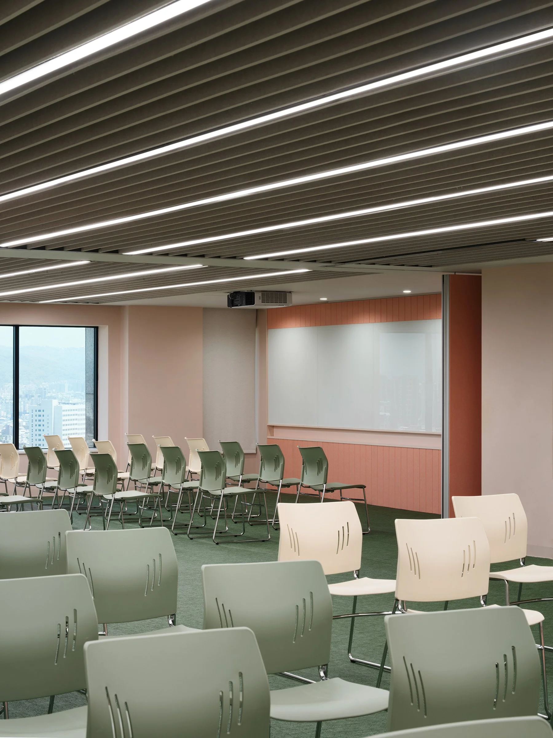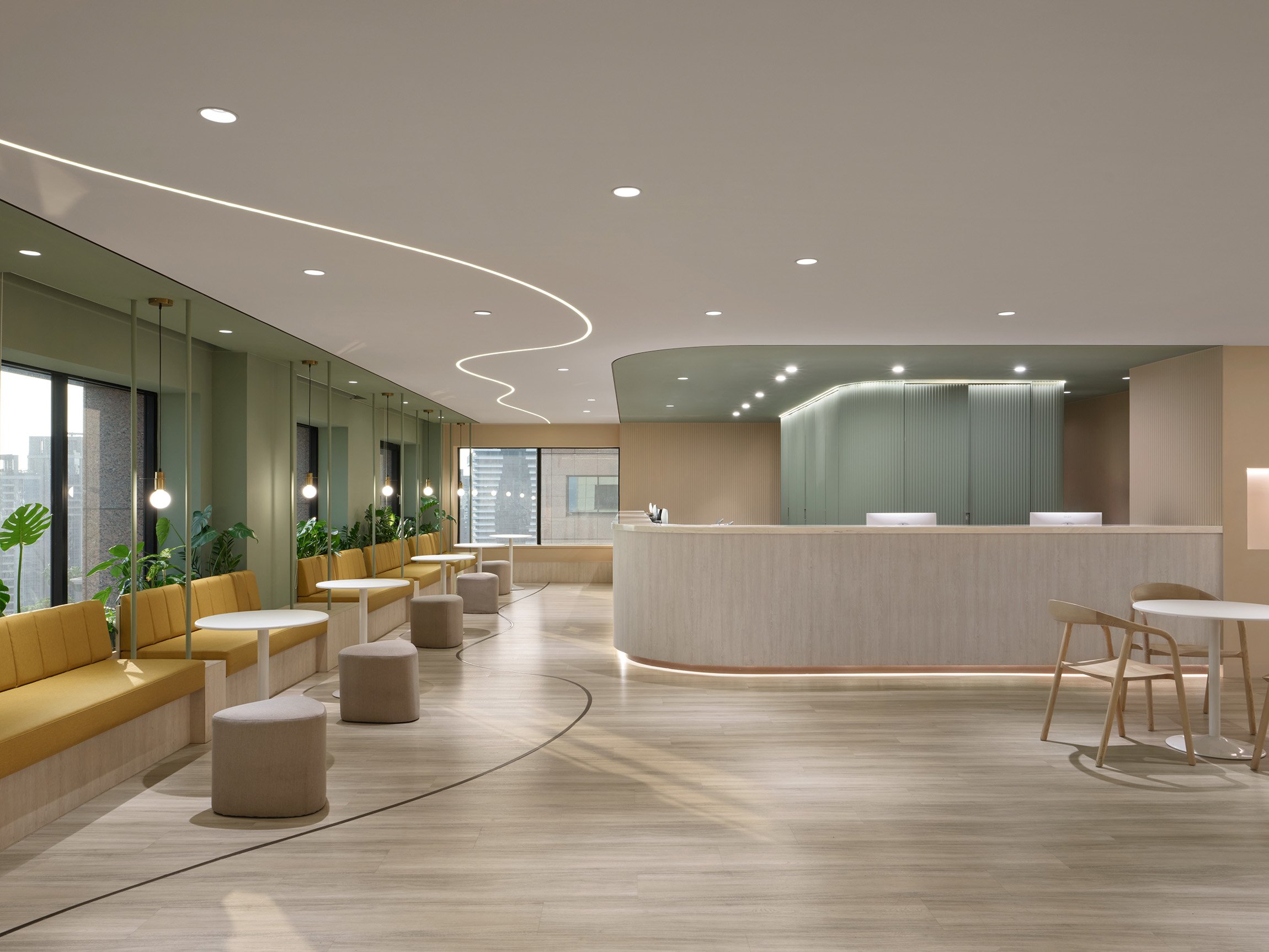 We were commissioned by our long-term client BWL, with whom we have been cultivating a rich design language across Asia. The latest regional centre in Taichung, Taiwan, occupies two expansive floors of a city-centre commercial building, totalling approximately 11,300 square feet. One level is dedicated to customers — a vibrant hub for product discovery, wellness consultations, and communal events. The other level houses BWL’s employees, offering a contemporary workplace with generous collaborative areas. This duality — customer and employee, public and private — forms the foundation of the project.