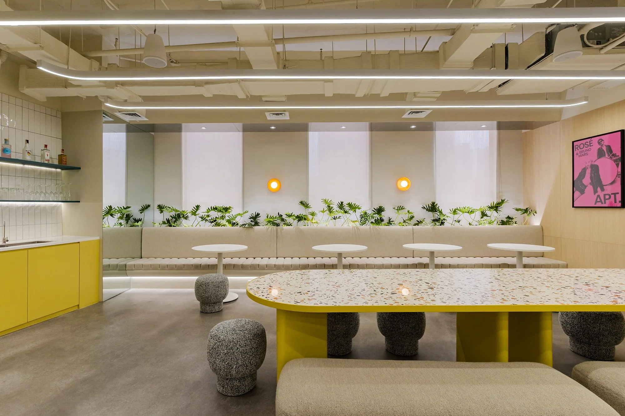 Mirrors are used with precision, not extravagance—enhancing light, extending greenery, and amplifying the lively atmosphere of the social hub. The palette as a whole shifts between composure and intensity, much like the rhythm of music itself.