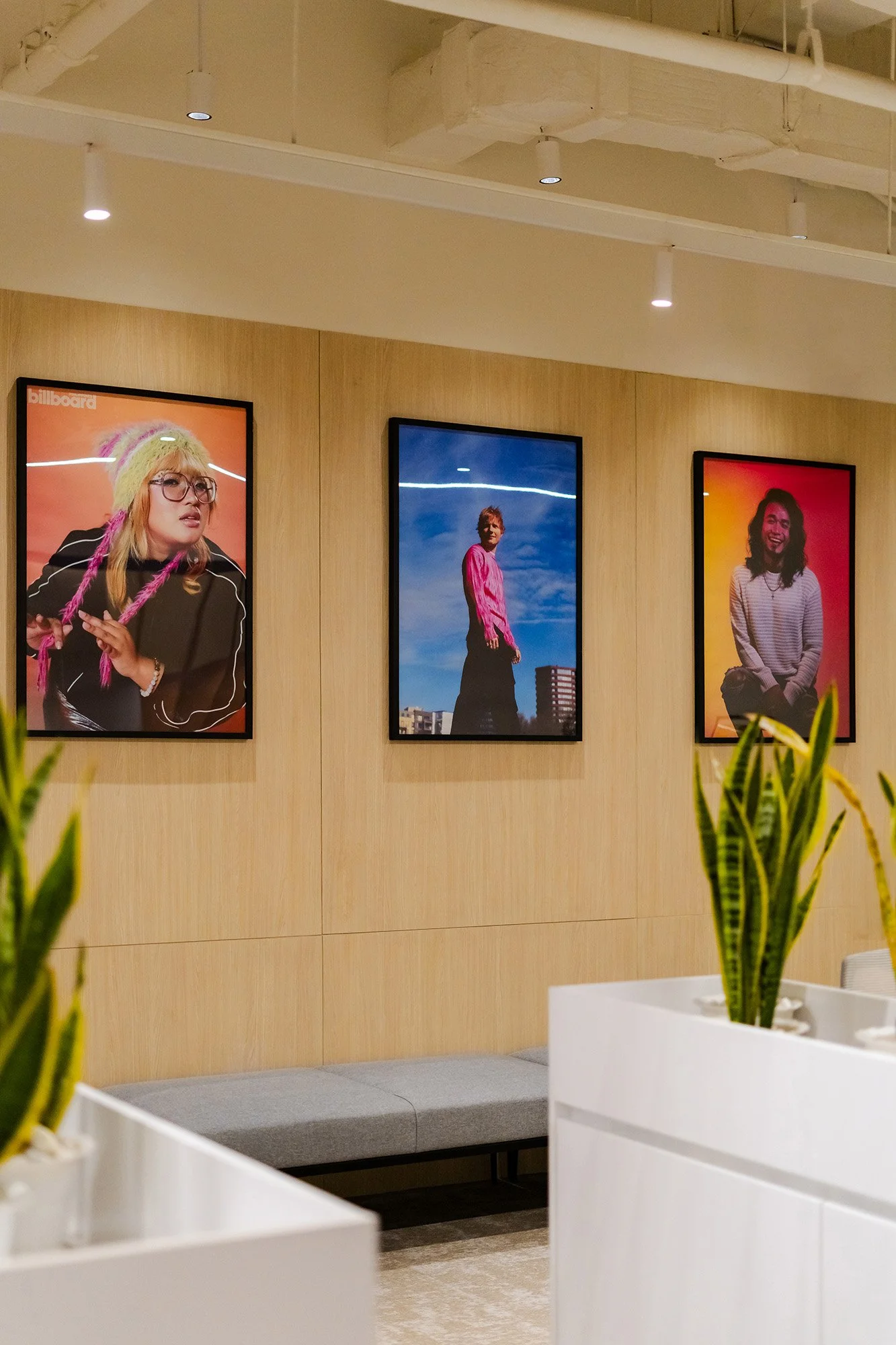 These tones subtly reference Manila’s architectural vernacular—terracotta bricks, indigo textiles, and the saturated hues of Filipino contemporary art. We also curated Warner Music’s collection of signed artworks by global music artists, placing them thoughtfully along circulation routes and feature walls to celebrate the company’s creative legacy.